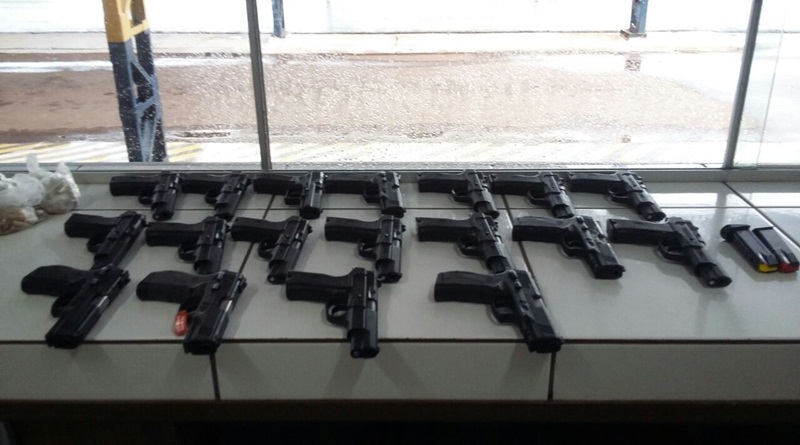 No momento da abordagem, com elas foram encontradas 18 armas de fogo tipo pistola calibre nove milímetros e 400 munições intactas.