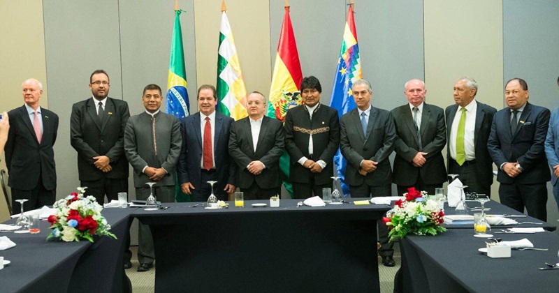 Tião Viana, junto aos governadores de Mato Grosso, Mato Grosso do Sul e Rondônia, esteve reunido com o presidente da Bolívia, Evo Morales, nesta terça-feira, 5, em Brasília. As discussões são para ampliar e reorganizar a cooperação entre os dois países, principalmente com esses estados situados na fronteira com o país vizinho.