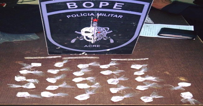 Durante um patrulhamento de rotina nas imediações do bairro Mocinha Magalhães, militares do Batalhão de Operações Especiais (Bope) apreenderam 27 trouxinhas de entorpecentes, além de três barras de substância aparentemente maconha. A ação policial militar, que culminou também na prisão de um agente, ocorreu nessa sexta-feira (12), na rua Ingá.