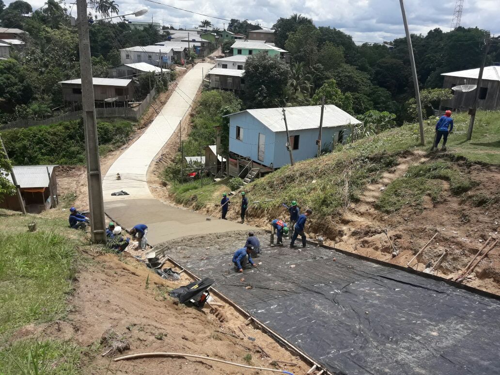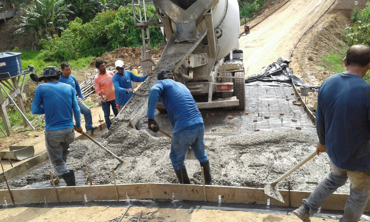 Thaumaturgo para inauguração de 7 kms de pavimento, de um total de 8,5 km. A cidade possui uma das geografias mais íngremes o que levou o DEPASA a adotar uma tecnologia de blocos concretados para dar mais resistência às rias que terão de passar por fortes chuvas. Já em Porto Walter, menos íngreme, a opção foi usar tijolos maciços: um método tradicional já testado e aprovado em muitos