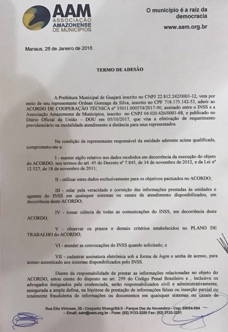 O município Guajará irá receber o projeto INSS Digital, que consiste na instalação de salas para atendimento aos moradores que precisam requerer benefícios do Instituto Nacional de Seguridade Social (INSS), como aposentadorias, salário-maternidade, auxílio-reclusão, entre outros.