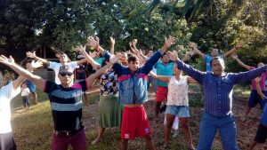 Aconteceram práticas, onde a comunidade dos povos originários aprenderam algumas sequências da automassagem e respirações profundas.
