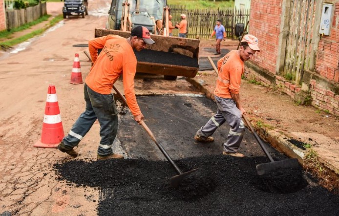A prefeitura de Rio Branco começou o ano intensificando o serviço de manutenção viária e para isso ampliou as equipes e a quantidade de massa asfáltica. No total nove equipes atuam diariamente e simultaneamente em diferentes lugares da cidade. A prioridade são as vias estruturantes, corredores de ônibus e acesso a bairros, o serviço é realizado nos três turnos: manhã, tarde e noite. São 7 equipes aplicando asfalto, 1 equipe de drenagem, 1 equipe trabalhando com piçarra para garantir acesso.
