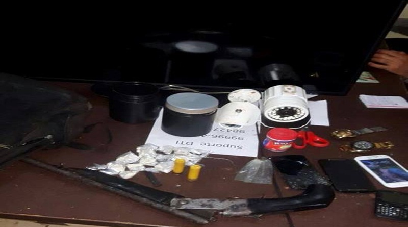A equipe militar diante das informações se deslocou ao local. Na residência foi encontrado um homem, que ao notar a presença policial tentou se desfazer de um pote, contendo 13 papelotes de maconha. Ainda no interior da casa foi localizada uma escopeta municiada e uma câmera de segurança.