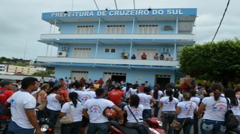 Agentes Comunitários de Saúde realizaram uma manifestação na manhã desta terça-feira, 27, em frente à Prefeitura Municipal de Cruzeiro do Sul para reivindicar salários atrasados e cumprimentos de acordo não realizados pelo Prefeito Ilderlei Cordeiro (MDB).
