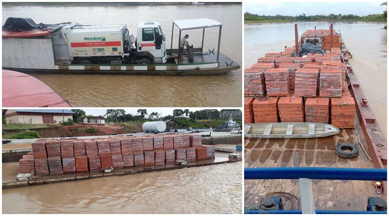 Neste sábado, 10, teve início mais uma etapa da epopeia de levar saneamento aos municípios mais isolados do Acre. Uma balsa com 360 mil tijolos partiu de Cruzeiro do Sul para alcançar, via rio Juruá, o município de porto Walter. Os tijolos serão utilizados para mais uma etapa na pavimentação das ruas do município, já parcialmente atendidas pelo programa.