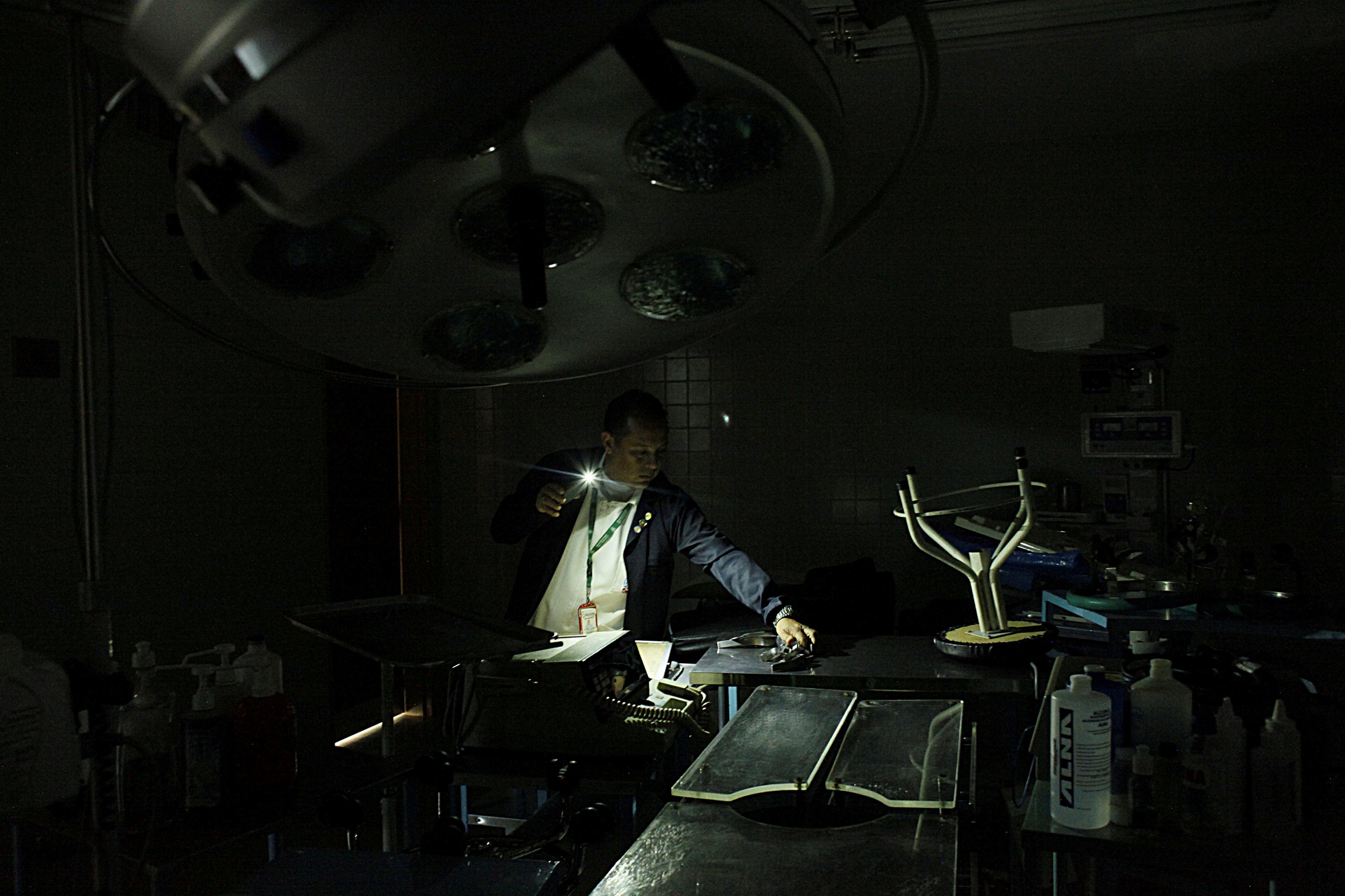 Levantamento foi feito pelo parlamento opositor e pela ONG Médicos pela Saúde. Enfermeiro usa luz de telefone celular ao manusear material em hospital em Rubio, na Venezuela