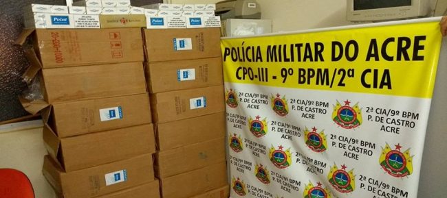 O veículo abandonado tinha em seu interior 14 caixas de cigarros, que foram apreendidas junto com o veículo e entregues na delegacia de polícia do município.