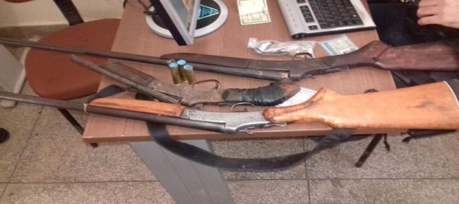 Deslocando ao endereço os policiais encontraram a espingarda cal. 20 e uma escopeta cal. 36, perguntado se existia mais alguma arma de fogo no interior da casa a resposta foi afirmativa e mais uma espingarda cal. 20 foi entregue à guarnição.
