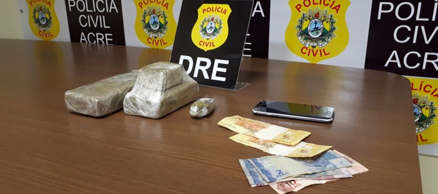 Em uma ação integrada entre as Delegacias de Repressão a Entorpecentes (DRE) da capital e Cruzeiro do Sul, juntamente com as delegacias de Sena Madureira e Tarauacá, a Polícia Civil apreendeu quinta-feira, 5, cerca de cinco quilos de maconha e pasta à base de cocaína. Três pessoas foram presas em flagrante.