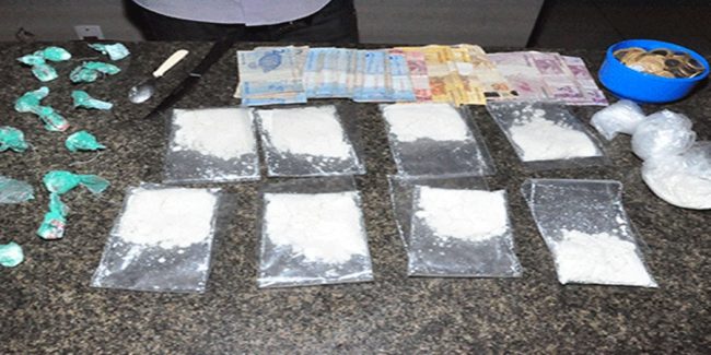 A outra parte foi encontrada em cima do guarda roupa. Segundo a polícia, foram apreendidos 9 pacotes de uma substância branca aparentando ser pasta à base de cocaína; 16 trouxinhas de substância branca também aparentando ser cocaína.