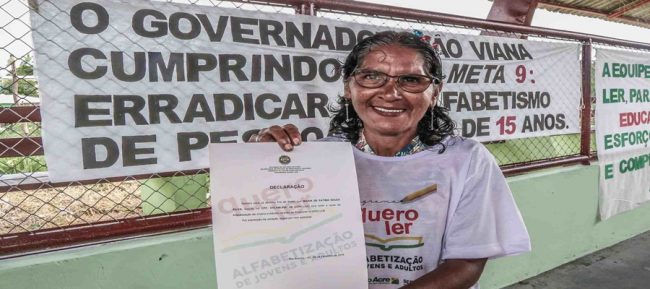 “Logo vamos proclamar o fim do analfabetismo no Acre a partir de setembro. Agora o esforço nosso é a luta para tentarmos formar mil turmas a partir do segundo semestre para a educação continuada, a fim de que eles possam ter o avanço e levar os seus estudos adiante”, afirmou o governador.