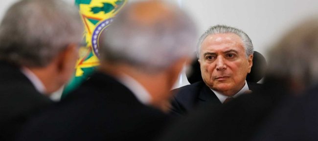 O pedido de intervenção militar manifestado em protestos pelo Brasil fez com que o risco de derrubada de Michel Temer chegasse a pauta do Congresso Nacional. De acordo com a coluna Painel, da Folha de S. Paulo, um parlamentar da base do governo defendeu a saída do emedebista durante uma reunião a portas fechadas no Senado.