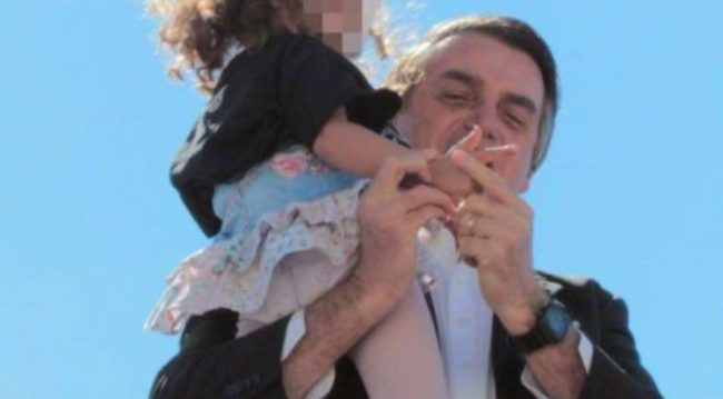 Um vídeo do pré-candidato à Presidência pelo PSL, Jair Bolsonaro, gravado em Goiânia nesta quinta-feira, mostra o aspirante ao Palácio do Planalto ensinando uma criança a fazer o gesto de uma arma com as mãos. O vídeo e as imagens geraram polêmica nas redes sociais. Em cima de um carro de som, enquanto discursava a simpatizantes, Bolsonaro segura no colo uma menina e a auxilia, com um largo sorriso no rosto, a usar os dedos polegar e indicador para simular que segurava uma arma em suas mãos. Em seguida, ele também faz o gesto.