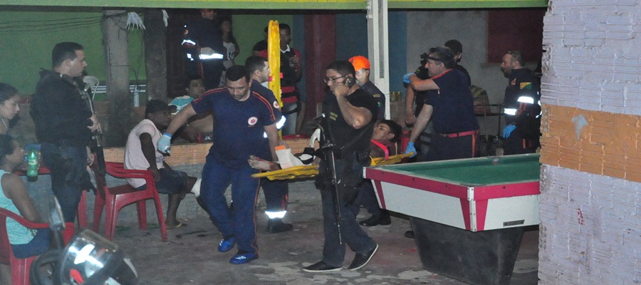 O fato aconteceu na noite deste domingo 15/07, quando dois homens em uma motocicleta de cor vermelha, chegaram em um bar na rua Raimundo Farias, bairro Montanhês, e abriram fogo contra todos que estavam no estabelecimento, pelo menos quatro homens foram baleados.