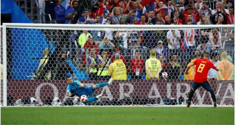A Rússia venceu a Espanha nos pênaltis, neste domingo (1º), e avançou às quartas de final da Copa do Mundo. As equipes empataram em 1 a 1 nos 90 minutos e o resultado seguiu o mesmo na prorrogação. Nas penalidades, os anfitriões derrotaram os espanhóis por 4 a 3.