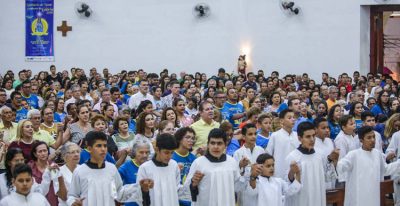 Além da chuva a festa religiosa foi marcada por uma grande emoção ainda durante a missa que antecedeu a procissão.