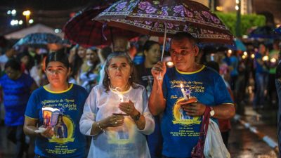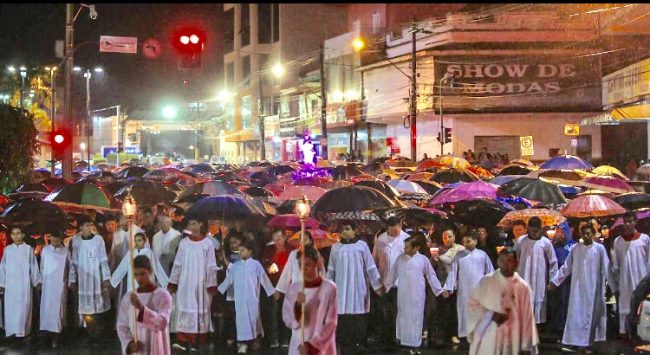 Fé: mesmo com chuva, fiéis participam de procissão em honra ao centenário do novenário de Nossa Senhora da Glória