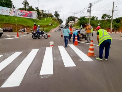 Prefeitura intensifica revitalização de faixas de pedestre e sinalização em Cruzeiro do Sul