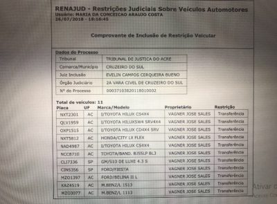 Segundo o ex-prefeito tenta passar à opinião pública, a notícia de que ele perdeu os bens para a Justiça não é verdade mas há documentos que comprovam que mais de que onze veículos estão bloqueados judicialmente.