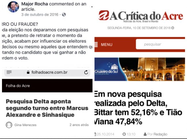 Em 2014, A mesma Delta previu uma vitória no primeiro turno para Márcio Bittar, que seria o governador do estado caso o resultado fosse confirmado. Na realidade, como se sabe, Tião Viana venceu Bittar no segundo turno naquele ano.