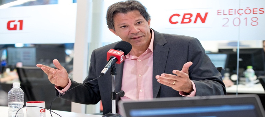 Haddad também falou sobre sua proposta para “reequilibrar a carga tributária”. Ele defendeu a cobrança de impostos sobre dividendos (parcela de lucros de empresas) e isentar de imposto de renda quem ganha até cinco salários mínimos. “O que nós defendemos é que os ricos, os muito ricos, voltem a pagar impostos como pagavam até 95 sobre dividendos para que a classe média e a classe trabalhadora paguem menos impostos. Então, nós teremos um reequilíbrio da carga tributária, e não um aumento dela.”