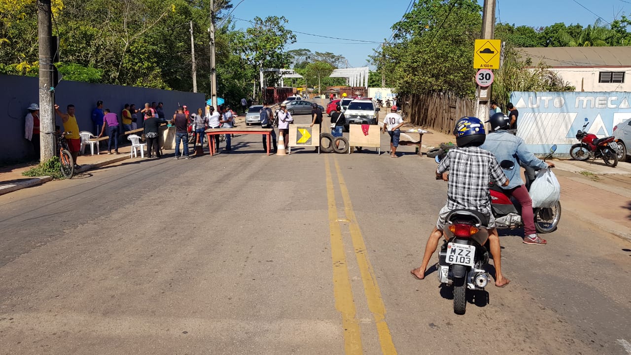 Na manifestação, os moradores usaram cadeiras, pneus, cavaletes e até uma mesa para fechar a via pública.