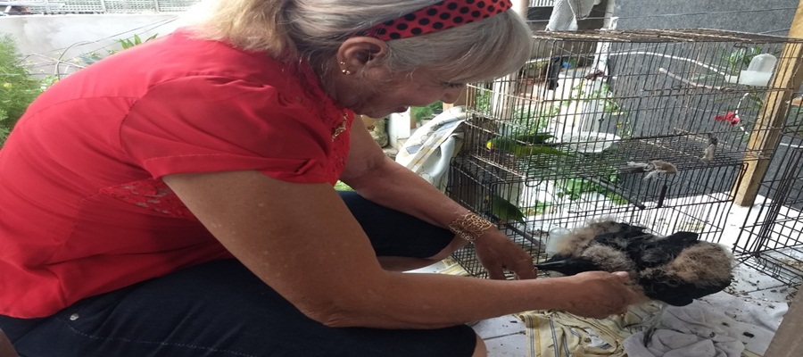 A idosa Francisca dos Santos Dantas, de 70 anos, ganhou um presente inusitado há um mês que virou o xodó de casa. O presente, dado por um amigo, foi um filhote de urubu e ela gostou tanto da ave que resolveu batizá-la de Pelé.