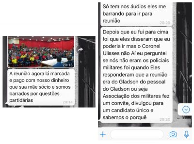 Os militares revoltados questionaram o porquê dessa atitude e a resposta que obtiveram é que o encontro estaria voltado para “o pessoal do Gladson”, resposta que aumentou ainda mais a ira dos renegados. “Ou seja: a Associação dos Militares fez o convite, divulgou para um candidato único e agora sabemos o porquê”, observou um oficial.