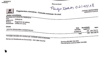 O diretor apresentou folha de pagamento comprovando que o pagamento foi efeituado no dia 02 de outubro para todos os funcionários terceirizados da CBCN, sem atraso. Segundo Jocélio, a ONG tem cerca de 280 servidores prestando serviço de limpeza para a prefeitura de Cruzeiro do Sul nas escolas e postos de saúde e cerca de 160 na área de limpeza urbana.