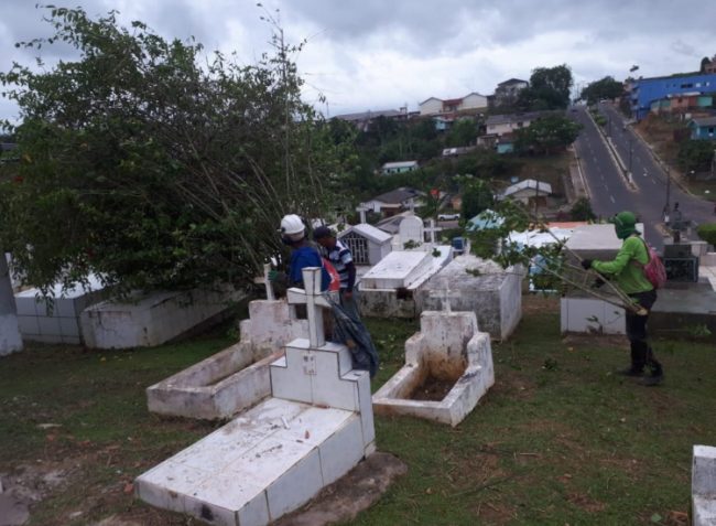 Uma equipe de 17 pessoas começou a limpeza nos cemitérios Jardim da Paz e São João Batista, em Cruzeiro do Sul, para a visitação do Dia de Finados na próxima sexta-feira (2). Além da roçagem, limpeza e retirada de entulhos, os locais devem receber pinturas.