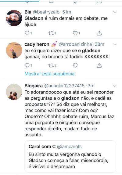 Assim, os internautas não perdoam. Em uma busca pelo nome de Gladson, só aparecem os comentários debochados e alguns até arrependidos por cogitar em votar no candidato do PP.