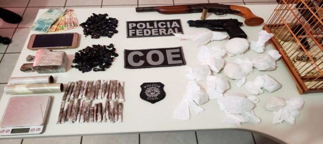 No cumprimento da operação, foram realizadas duas prisões em flagrante. Foram apreendidos uma garrucha calibre 20, munições, armas de brinquedo, animais silvestres e 945 gramas de cocaína em poder de um homem de 29 anos. Com outro homem, de 45 anos, foram apreendidos 400 gramas de maconha e cocaína, parte delas já embaladas para venda além de uma balança digital e petrechos para manuseio e embalamento das drogas. Ambos os flagrantes se deram na cidade de Mâncio Lima.