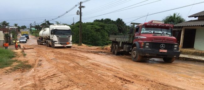 Há mais de um ano, o asfalto da rua de acesso ao Porto de Cruzeiro do Sul foi destruído e os condutores de veículos sofrem os mesmos transtornos em dias de chuva. “A prefeitura veio, fez um trabalho paliativo, mas jogou só o pinche e a primeira chuva que veio levou tudo e está aí, vocês estão vendo as condições”, reclamou Sairo Maia, que dirige um caminhão que transporta combustível.