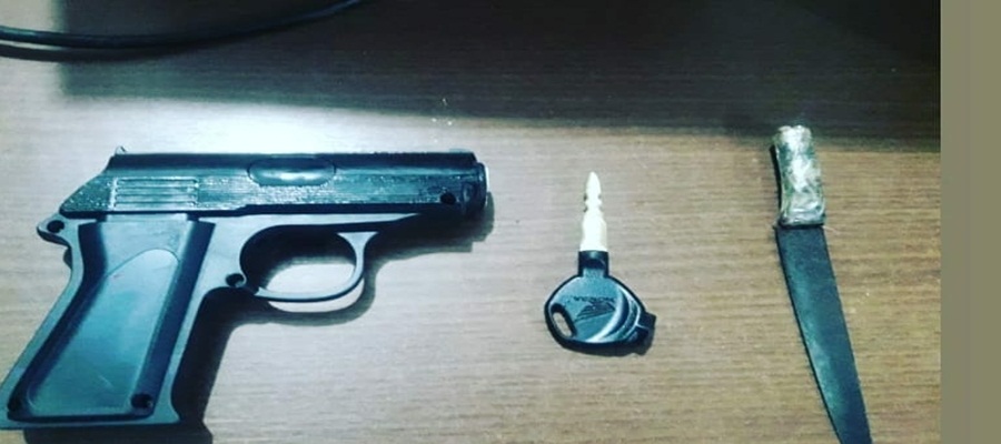 De acordo com a polícia, moradores do local tiveram seus bens subtraídos durante o assalto; após o registro desta ocorrência, o suspeito foi abordado pela PM e com ele, a polícia conseguiu apreender um simulacro de arma de fogo, 1 chave “mestra” e 1 faca; material que é utilizado para arrombar motocicletas.