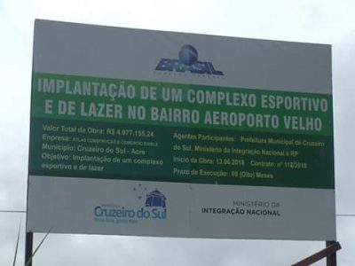 Com mais de 4 meses que foi dada ordem de serviço para a construção do Centro Esportivo de Cruzeiro do Sul, a obra ainda não avançou como se esperava. Até o momento, foi feita apenas a preparação do terreno para a construção do complexo. A demora se deu por conta dos recursos das emendas destinadas para a obra que não tinham sido liberadas.