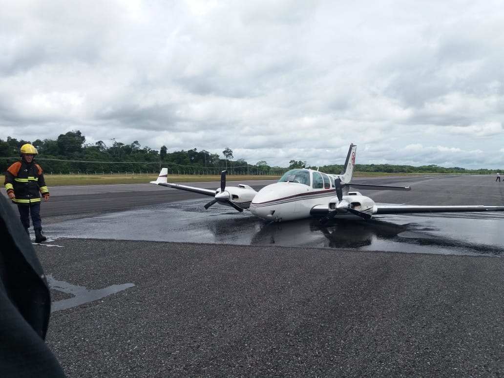Uma avião bimotor, modelo Baron 58, fez um pouso de emergência, na manhã desta terça-feira (27), no Aeroporto Internacional de Cruzeiro do Sul, após falha no trem de pouso. A aeronave era usada em treinamento de rotina dos pilotos da empresa de táxi aéreo Aerobran.