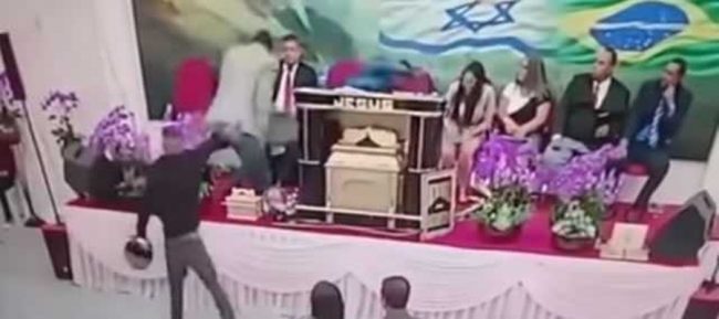 Um pastor evangélico foi baleado na noite deste domingo, durante culto em uma igreja de Mogi das Cruzes (SP). A celebração era transmitida ao vivo pela internet e as imagens mostram o atirador chegando e disparando contra a vítima, que ainda tenta correr e é atingida por dois disparos.