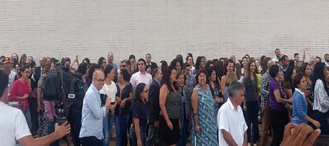 Por volta de 15 horas, o ato foi iniciado com um abraço coletivo à sede do ministério. O grupo gritava palavras de ordem como “trabalho” e “fica, ministério”, além de cantar o Hino Nacional muitas vezes, de acordo com reportagem do G1.