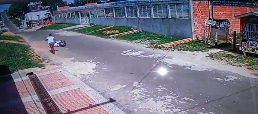 Na tarde desta segunda-feira (12), as câmeras de segurança de um estabelecimento, localizado na Rua Pedro Teles, no bairro Cruzeirinho, flagraram o exato momento em que o condutor de uma motocicleta modelo Biz, perdeu o controle do veículo, e acabou caindo em meio à estrada. Ferido, o condutor ainda consegue levantar e retirar a motocicleta do meio da rua.