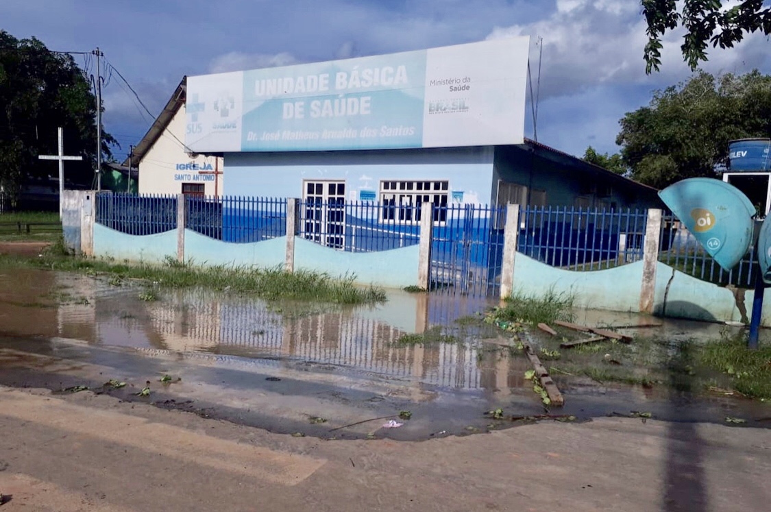 Cheia atinge entrada de unidades de Saúde e atendimento é suspenso