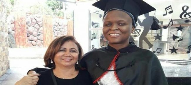 Nadine com sua ‘mãe’ brasileira, Loide Wanderley, na formatura da faculdade de Direito, onde ganhou bolsa integral/Foto: Arquivo Pessoal