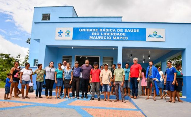 O Prefeito de Cruzeiro do Sul inaugurou na manhã de segunda-feira (17) a Unidade Básica de Saúde Maurício Mapes, na Comunidade São Pedro, no Rio Liberdade. A estimativa é que sejam atendidas mais de 200 famílias, com um total de mais de 800 pessoas das 23 comunidades situadas ao longo do Rio Liberdade. O investimento da obra foi de R$407.895,32 mil, provenientes do Programa Fundo a Fundo do Ministério da Saúde.