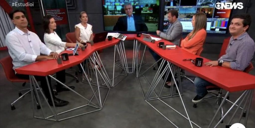 Internautas apontaram que o autor do deslize teria sido o jornalista Octavio Guedes – que aparece logo à direita do telão com Major Olímpio. Ele aparece mexendo no celular pouco antes da imagem mudar para a questão do espectador.