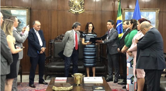 A suplente do Governador Gladson Cameli, Mailza Gomes tomou posse na manhã desta quinta-feira (03), na sala de reuniões do Senado Federal.