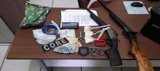 Na ação duas armas, oxidado de cocaína e mais de R$ 1 mil foram apreendidos. O objetivo da ação era desarticular o tráfico de drogas no município.