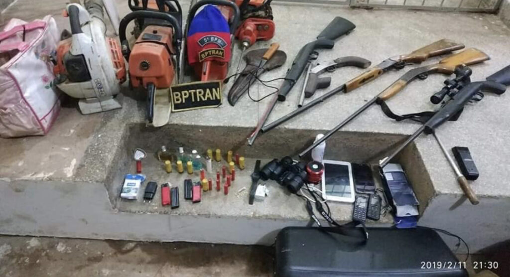 No carro foram encontrados quatro espingardas e uma escopeta, além de motosserra, soprador, vários produtos da Boticário, celulares, Tablet, joias e vários objetos oriundos de um roubo ocorrido na Estrada do Quixadá. Os homens invadiram a propriedade e armados levaram todos os objetos encontrados além do veículo que usavam, deixando as vítimas amarradas em um compartimento da casa.