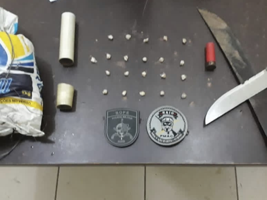 De acordo com os militares, em uma das prisões por tráfico de drogas, a do agente Rainando Melo que tem 7 passagens pelo cometimento do crime de furto, foram apreendidas 21 pedras de crack, além de insumos para confecção de entorpecentes e produtos de origem ilícita.