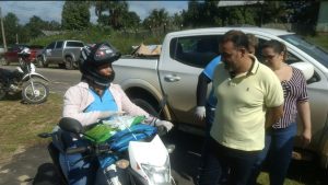 O prefeito Ilderley Cordeiro participou da entrega dos materiais juntamente com a secretária municipal de saúde, Juliana Alves.