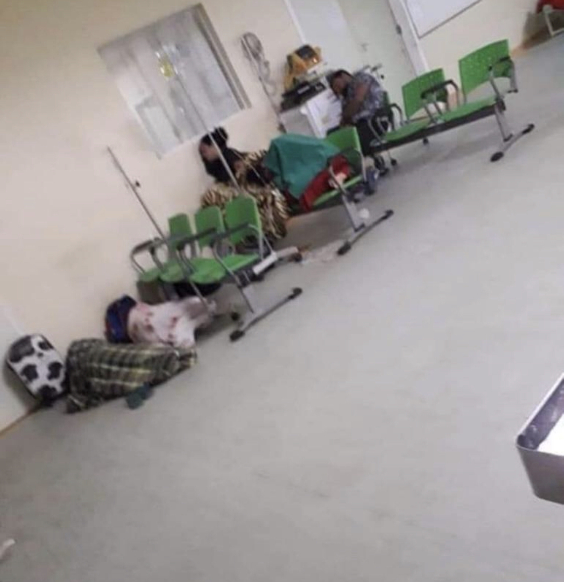 Nas imagens feitas pela internauta, é possível ver pacientes deitadas no chão da recepção, recebendo medicação. Outras mulheres estão em cadeiras usando a parede como encosto.